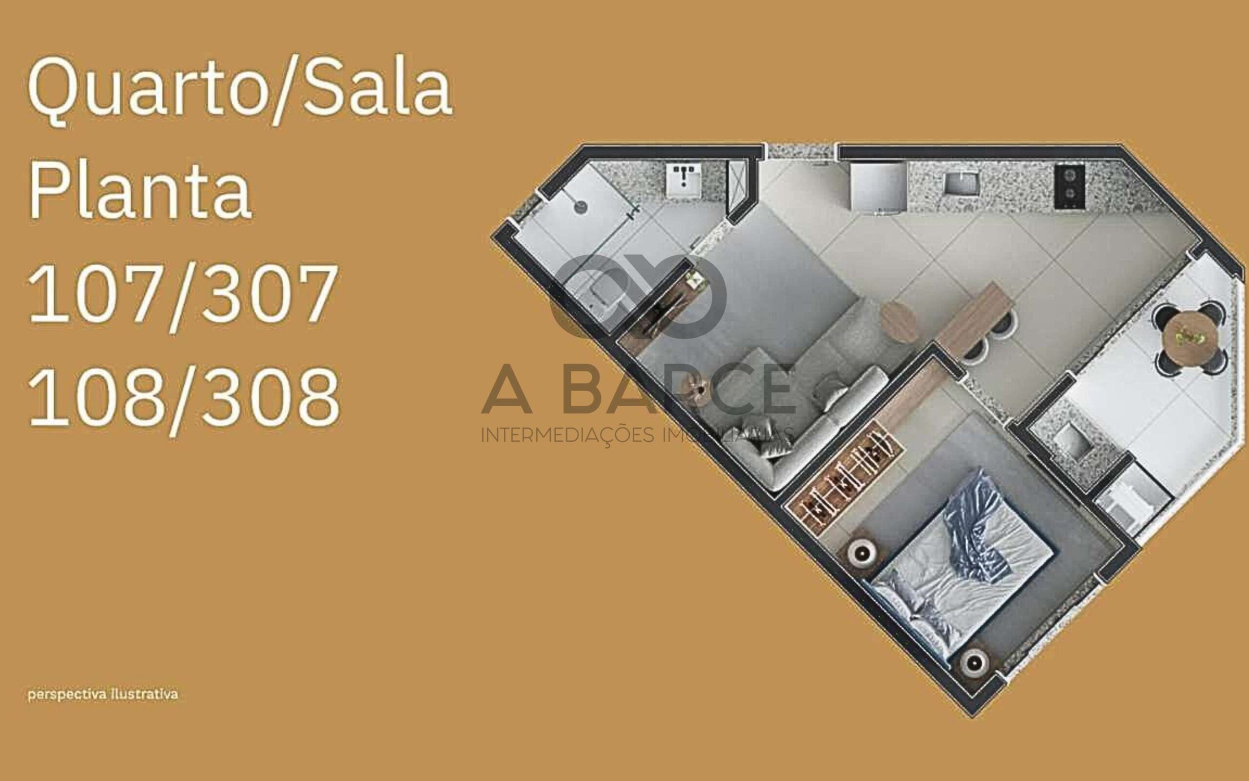– Apartamentos Quarto e Sala – Metragem: 37,98 m²;