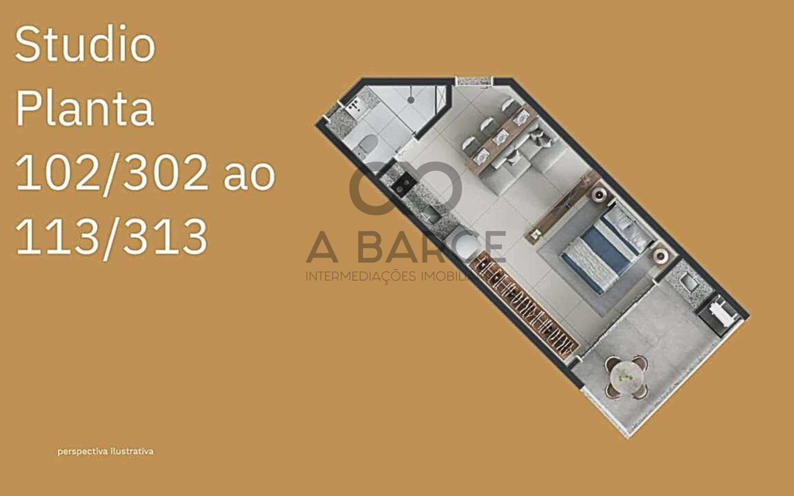 – Studios – Metragem: 36,15 m² a 36,78 m²;